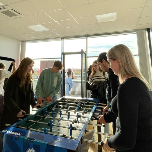 Beim „Markt der Möglichkeiten“ hatten die Auszubildenden die Gelegenheit, direkt mit potenziellen Arbeitgebern aus den verschiedenen Standorten ins Gespräch zu kommen und sich über berufliche Perspektiven zu informieren. Ein besonderes Highlight war die Stadiontour durch die VELTINS-Arena des FC Schalke 04 – ein Blick hinter die Kulissen, der durch die Kooperation mit den Knappschaft Kliniken sportlich inspiriert ist. Zum Ausklang des Tages luden Foodtrucks an der „Tausend Freunde Mauer“ zum entspannten Beisammensein ein.