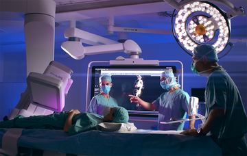 Der da Vinci® ist ein hochmoderner Chirurgie-Roboter und unterstützt den Operateur bei Operationen. Der Roboter verfügt über vier bewegliche Arme. Daran befinden sich eine hochauflösende 3D-Kamera sowie drei winzige Operationsinstrumente. Über eine Steuerkonsole bedient der operierende Chirurg den Roboter mit speziellen Handgriffen und Fußpedalen. Der Operationsroboter wird für verschiedenste Operationen eingesetzt, vor allem im Bereich der Urologie und der Hernienchirurgie. Mit Hilfe dieser modernsten Metode sind hochpräzise Eingriffe und eine schnellere Genesung möglich.